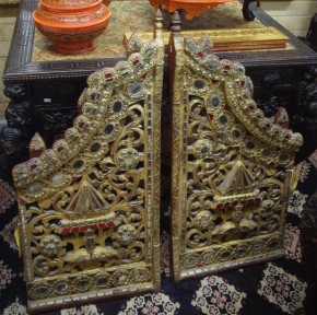 Lot Description:Pair of Burmese mirrored gilt window panels