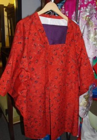 Lot Description:Short red kimono with purple pants