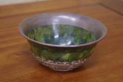 Lot Description:Chinese green stone & silver colour metal tea bowl