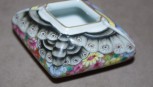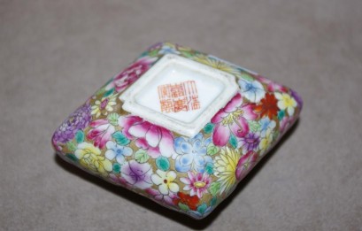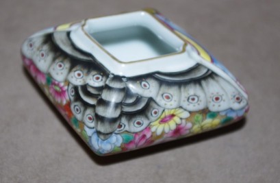 in diamond shape with two stylised butterflies flanking mouth. Character marks to base. -