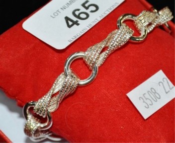 Lot Description:Italian silver bracelet with twisted ribbon & ring link design