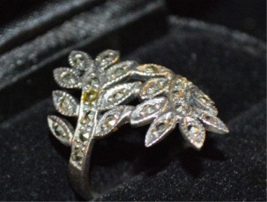 Lot Description:Vintage marcasite & silver ring with fern design