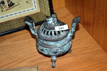 cauldron form with pierced lid & outswept handles, height is 17cm -