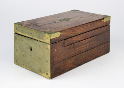 Lot Description:An Antique Brass And Hardwood Travelling Officer's Grooming Set