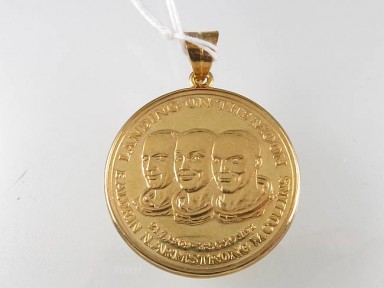 commemorating the First Landing on the Moon, with 18ct gold frame; medallion struck with 999.9 purity. Weight 19.8g. -