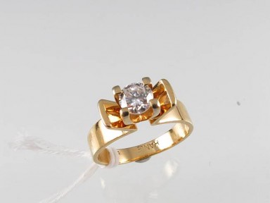 with a brilliant-cut diamond four-claw-set in 18ct gold. Estimated weight of diamond 0.42ct graded in the setting as Colour G/H, Clarity SI. Weight 3.7g. -