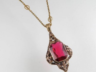 Lot Description:A Red Stone And 9ct Gold Pendant