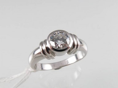 brilliant-cut diamond in platinum. Estimated weight of diamond 0.75ct graded in the setting as Colour F, Clarity VS1. Weight 8.1g. -