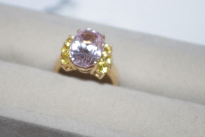 Lot Description:9ct yellow gold, kunzite and yellow topaz ring