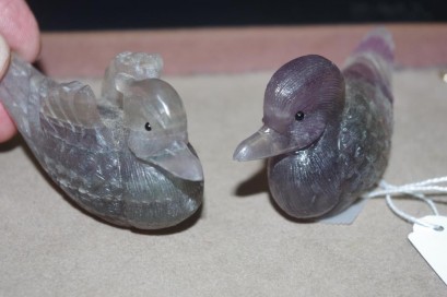 Lot #1251 - Pair of hand carved gemstone duck carvings