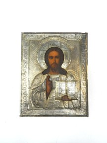 Lot Description:A Fine 19th century Russian Silver Mounted Icon of Christ