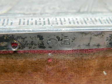 the silver mount finely embossed and engraved over painted timber panel, mounted in velvet verso, Russian hallmarks pre 1908 and makers mark AA?