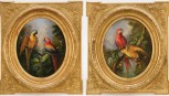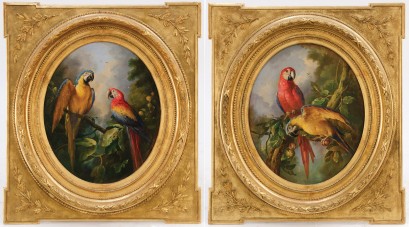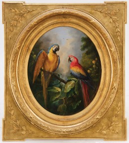 pair of oval oils on canvas, decorative gilt frames