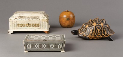 Lot #312 - An engraved and carved Archangel workbox, Russian circa 1800