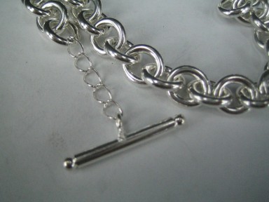 ring-link chain with heart tag ring and bar clasp. Weight 68g. -