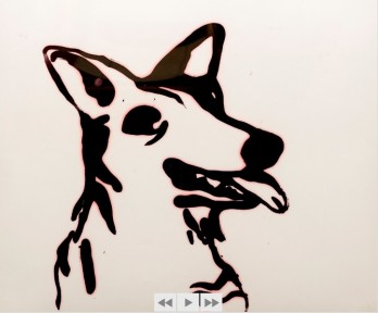 spray paint and hand applied black enamel on plastic graphics industry sheet