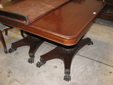 Lot Description:Antique mahogany twin pedestal single leaf extension dining table