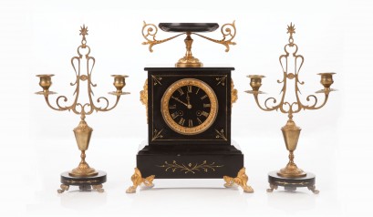 Lot Description:A 19th Century French Black Marble & Ormolu Clock Garniture