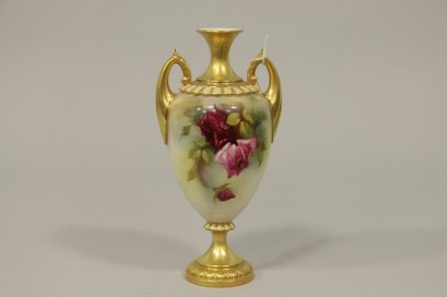 Lot Description:A Royal Worcester Twin Handled Urn Vase