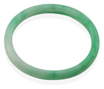 The oval shaped half round bangle of pale green and white tones, Hong Kong Jade and Stone Laboratory Certificate available.