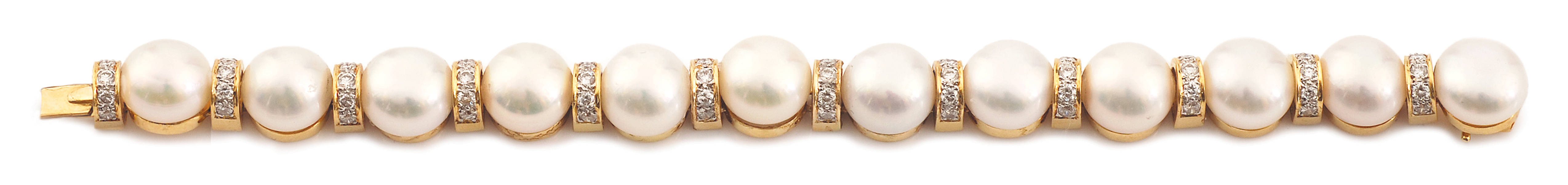 Lot #195 - A Cultured Pearl And Diamond Bracelet