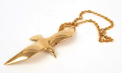 Designed as a seagull in flight to a flat belcher link chain, all in gilt metal.