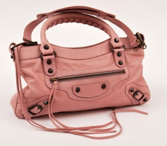 Styled in dusty pink coloured leather with burnished metal hardware and detachable shoulder strap, 24360 - 103208, 34 x 18cm.