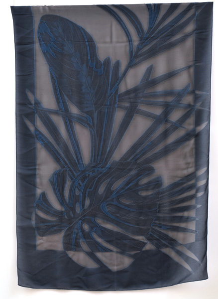 The silk blend chiffon scarf with foliate design in shades of dusty blue, 72 x 182cm.