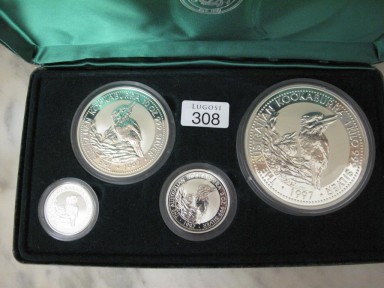 Lot #308 - Kookaburra sterling silver 1988 four coin set one kilo silver coin
