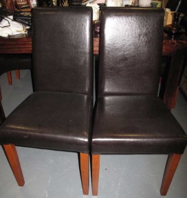 Lot #515 - Set of six dark brown leather high back dining chairs