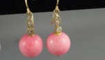 Lot Description:Pair 9ct yellow gold & round pink coral earrings