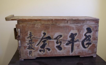 Lot #1784 - Rustic carved Oriental fire box & bellows