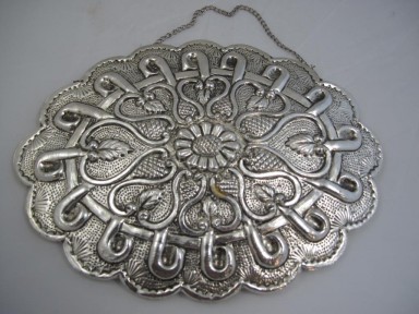 Lot Description:Chinese silvered oval embossed mirror