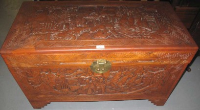 Lot #501 - Chinese vintage carved camphor wood large chest