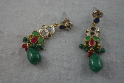 Lot Description:Silver, emerald, ruby and natural stone earrings