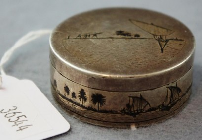 Lot Description:Silver box (950) with Egyptian scene