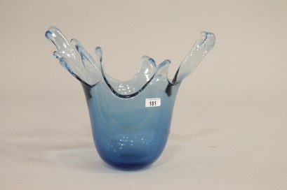 Lot #181 - A Vintage Blue Glass Free Form Vase
