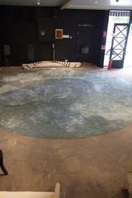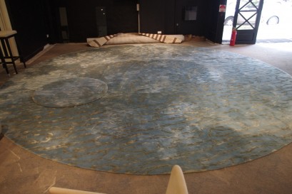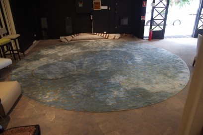 turquoise coloured wool with gold silk accents, together with a matching miniature circular rug (2)