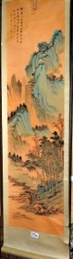Lot Description:Chinese watercolour scroll on silk of a river landscape scene