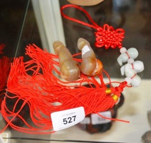 Lot #527 - 3 items: pair of carved stone fertility pendants