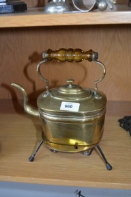 with an amber glass handle, complete with a later brass burner stand to hold tealight candle -
