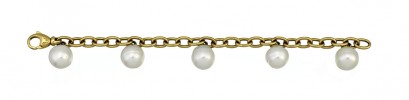 The cable link bracelet suspending five cultured pearls measuring approximately 12.46 to 13.53mm, length approximately 190mm, signed Paspaley.