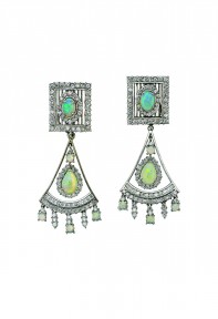 Lot Description:Pair of Opal and Diamond Pendant Earrings
