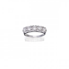 Of half hoop design claw-set with a row of five brilliant-cut diamonds together weighing approximately 1.25 carats, mounted in 14ct white gold, size T. -