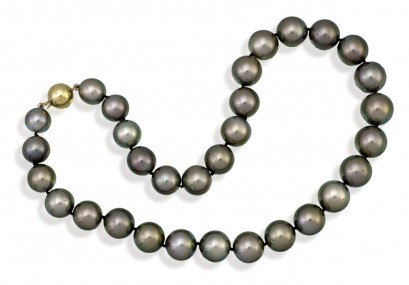 Composed of thirty-one cultured pearls graduating from approximately 12.00 to 14.50mm, completed by an 18ct gold ball clasp, length approximately 450mm.
