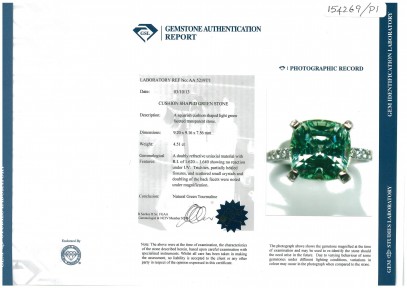Notes:Accompanied by a GSL report numbered AA52197/1, dated 3 October 2013, stating that the 4.51 carat gemstone is Natural Green Tourmaline.