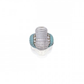 Lot Description:Rock Crystal, Turquoise, Onyx and Diamond Ring, Andre Vassort, Circa 1970