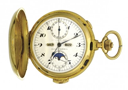 Lot #195 - An 18ct Gold Minute Repeating Hunting Cased Chronograph With Moonphase, Swiss, Circa 1910