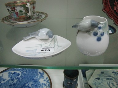 Lot #425 - Two German bird decorated items dish and vase
