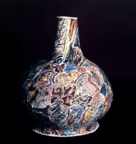glazed abstract pattern, artist's signature painted to side of base 'S. Benwell '85'